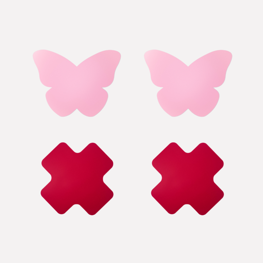 Bundle and Save this Valentine's Day! Bundle includes The Butterfly in Pink and The X in Red. Self-adhesive, ultra-thin silicone patches made for smooth coverage and lie seamlessly under clothes. Nipple covers are often thought of as a practical or necessary undergarment, but who says they can't be fun! You deserve to feel confident on every level and Tita is here to help with that.